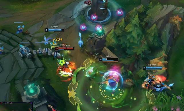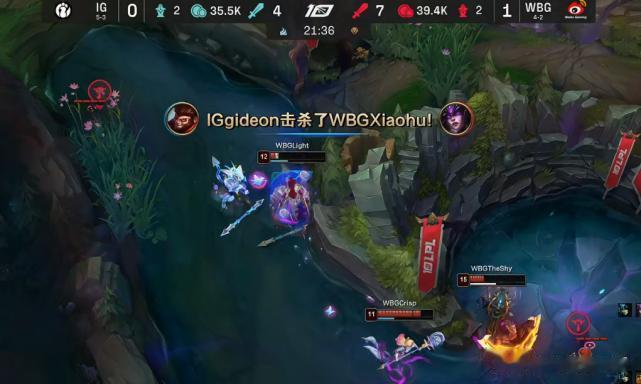 节奏点在21分钟到来,Ahn泽丽被秒,WBG斩获大龙,把优势扩大到4000。27分钟退无可退的IG猴子尝试开团,奈何装备差距过大,IG前排英雄被秒,Ahn泽丽随后倒下,WBG一波终结比赛,双杀IG斩获两连胜。