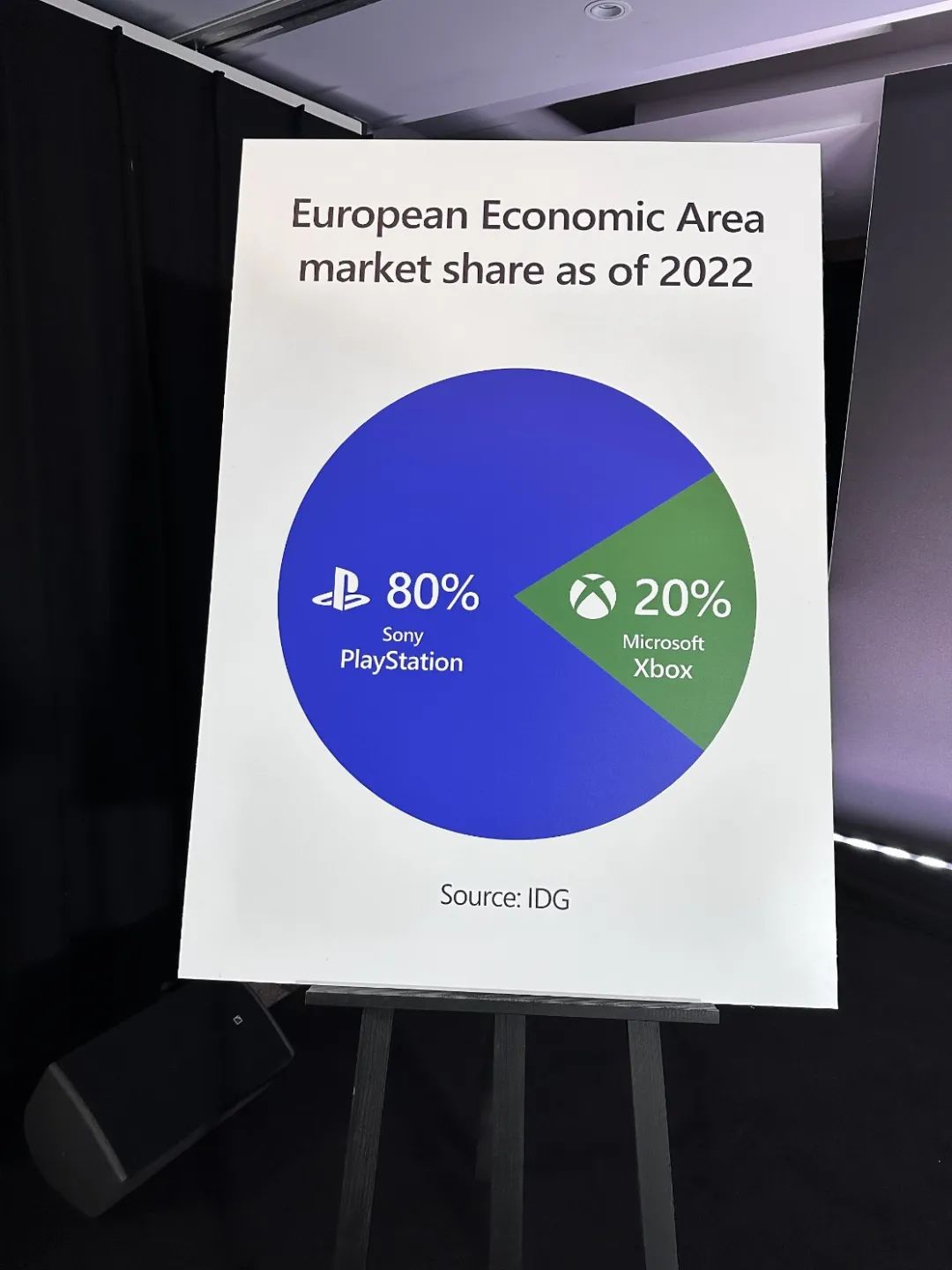 微软官方还在今天,还公布了2022年Xbox和PlayStation的市场份额对比。在全球市场,前后两者分别为Xbox 30%和PlayStation 70%,欧洲市场分别为Xbox 20%和PlayStation 80%,日本市场则是Xbox 4%和PlayStation 96%。这些数据的展示,同样很明显是为了应对反垄断调查,因为这些数据里,微软刚好没有摆出Xbox最具优势的北美市场数据。