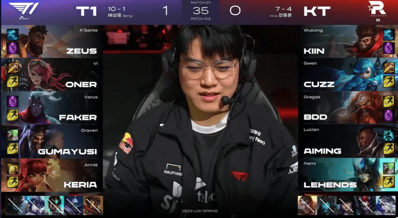 T1选用:Zeus奎桑提、Oner蔚、Faker安妮、Gumayusi德莱文、Keria韦鲁斯