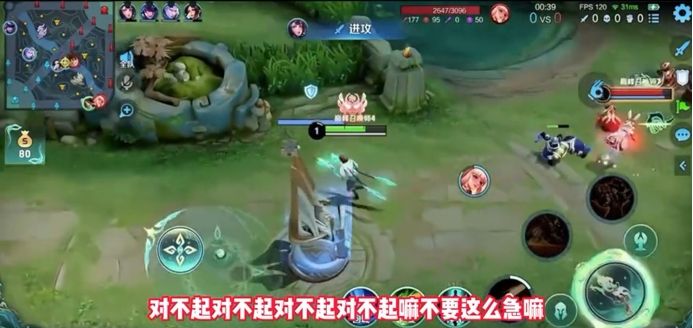在这局游戏中,韩涵选择的是马可波罗走发育路。而口袋主攻发育路,最后拿到了公孙离。就对线优势来看,由于公孙离太灵活了,韩涵是有点不占优势的。虽然韩涵刚开局就放狠话,但真正对线的时候确实有点吃力。不过在四级之后,中单和打野都来支援韩涵,配合大乔二技能的回城效果,拿到一血后直接就被传回去了。