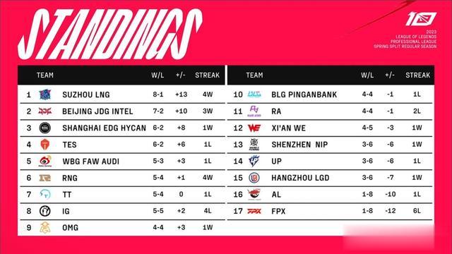 比较可惜的就是IG和TT这两支战队,原本是有黑马之姿的,但就是绷不住那根弦!开赛以后IG早早就拿到了5胜的战绩,一度登顶LPL积分榜,甚至还战胜了RNG这样的队伍,但后面这波4连败属实让人感觉惋惜,状态越打越差,需要好好调整一波!