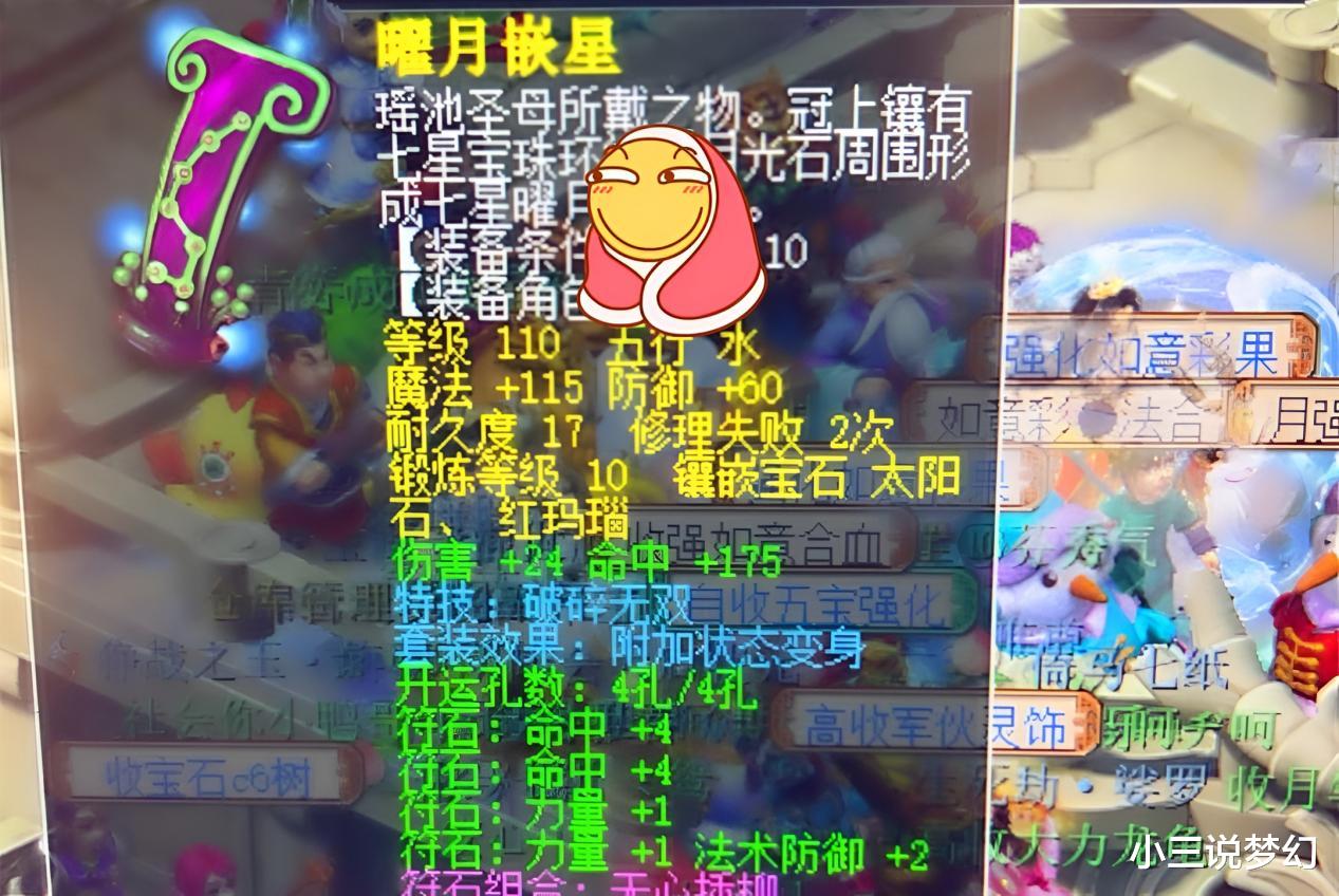 上面这位玩家给110级的破碎女头就点出来了变身套,如果梦幻西游中有女狮驼的话,上面的这件装备会很值钱,但是梦幻西游是没有女狮驼的,梦幻西游中狮驼岭门派的玩家都是男性角色,想要使女装备的变身套使用,就只能策划改狮驼岭门派的性别限制。