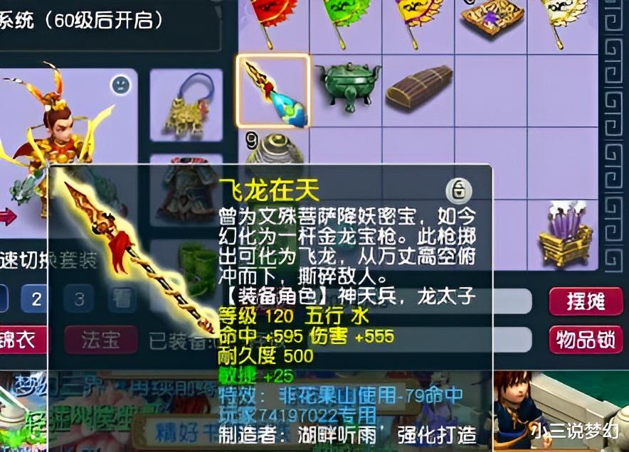难道低等级的角色鉴定装备的时候真的很容易出货吗?小编已经见到了很多60级以下的角色鉴定出物理系的梦想武器了,上面这位玩家鉴定出来的就是一把120级物理系梦想的枪,专用的门派是对的,而且这把武器的伤害属性和命中属性都非常的高,还增加了25点敏捷,如果给上面的这把武器打满宝石,这把武器的综合总伤害是可以达到867,这肯定是129级的一线武器了,不过上面是一个59级的角色,从59级升到129级可能还需要再等一段时间。