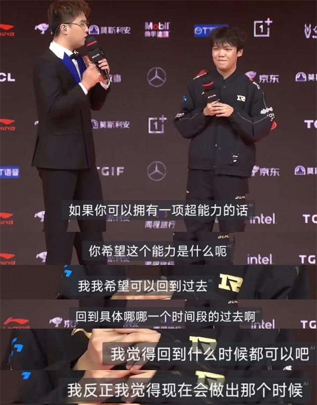 刘航很好奇:具体回到哪个时间段呢?angel说:随便哪个时间都可以吧,我想作出跟那时候不一样的选择,看看结果如何。当时我以为angel想回到休赛期,拒绝跟RNG签长合同。刘航还帮他圆了一下:可能选手想找回当初那种勇气和信心,也希望你能带着这种信念,在未来比赛中打得更好。