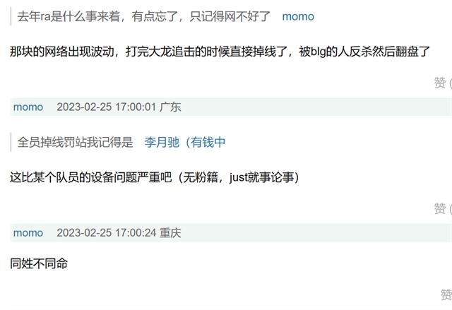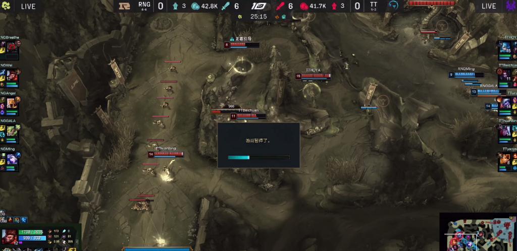 RNG这件事跟JDG颇为相似,都是在不恰当的时间暂停,都进行了时空回溯,回溯后选手都做了不合适的操作,导致战队被诟病。要对比的话,我还想到了另一个例子——RA。当时RA战队网络波动,齐齐掉线。BLG选手没意识到这点,多操作了一下。