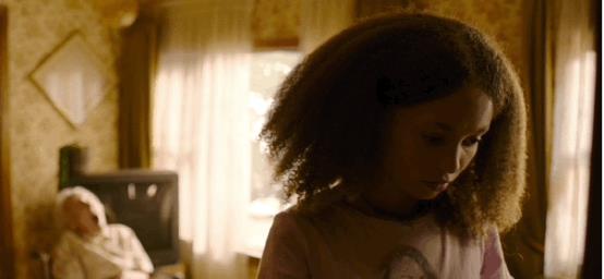 更恐怖的是,莎拉在邻居家挑选录像带时,身后瘫痪已久的奶奶,突然张大嘴,发出呜呜的声音。