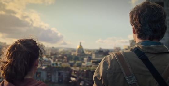 在第二集里,乔尔与艾莉在隔离区外看着落日。