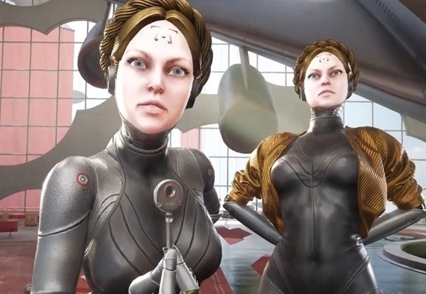 此外,近日名为DmgVol的玩家制作了一个MOD,让《原子之心》中的双子舞伶揭开了面具,展示了它们真实的脸庞。MOD所显示的面孔是由游戏开发团队制作的真实面孔,并非由MOD制作者修改而来。这两个机器人的面孔可能来自于早期游戏开发版本,只是在游戏开发过程中被去除了。