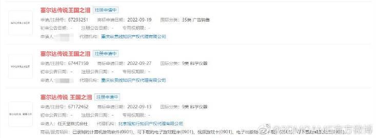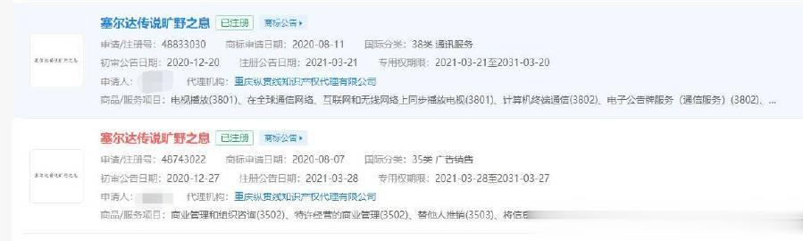 【】 距离《塞尔达传说:王国之泪》发售还有2个月,然而据企查查显示,“塞尔达传说旷野之息”“塞尔达传说王国之泪”“王国之泪”已被自然人常某某抢注,其中“塞尔达传说旷野之息”商标已于2021年注册成功,“王国之泪”商标正在进行初审公告。