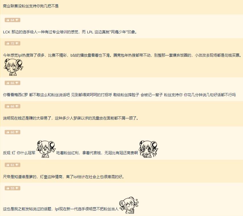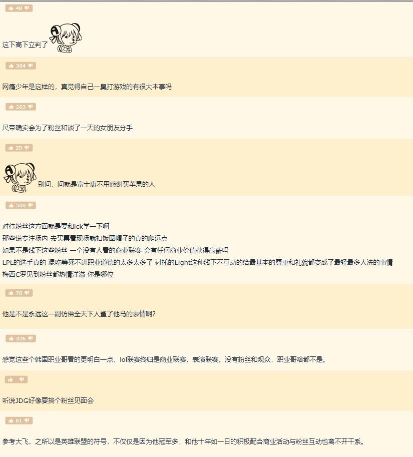 不同的态度也引发了后续很多人关于对待粉丝的讨论,不少网友都觉得LCK那边选手的职业素养普遍比LPL高很多。