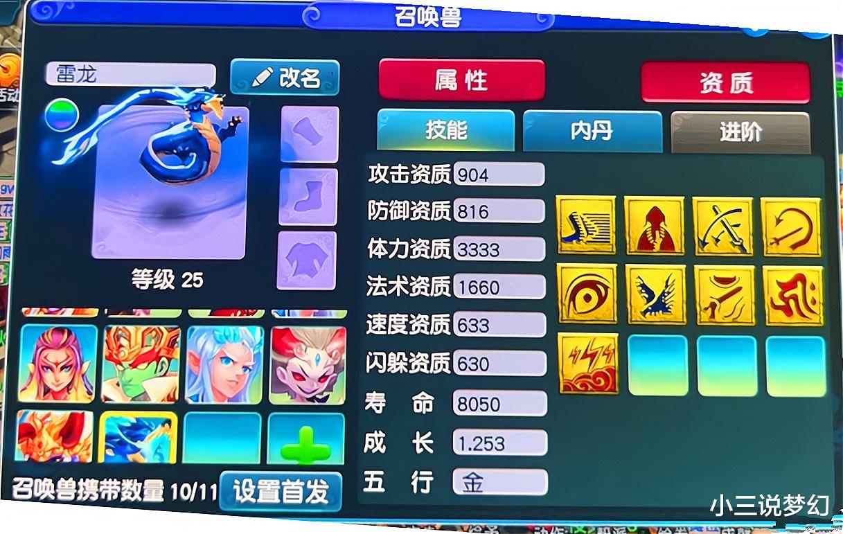 小编感觉这只雷龙的资质真的有点差,攻击资质,防御资质,速度资质,躲避资质全部都是三位数,而且速度资质也只有633,这种召唤兽的法力资质也特别的低,虽然法力资质对于须弥宠的影响不是特别的大,但也是有影响的。小编感觉在东海湾抓过来的那些大海龟的初始资质都要比上面的这只雷龙的资质好,所以上面的这只雷龙如果能够打成,后期可能需要养很长的时间。