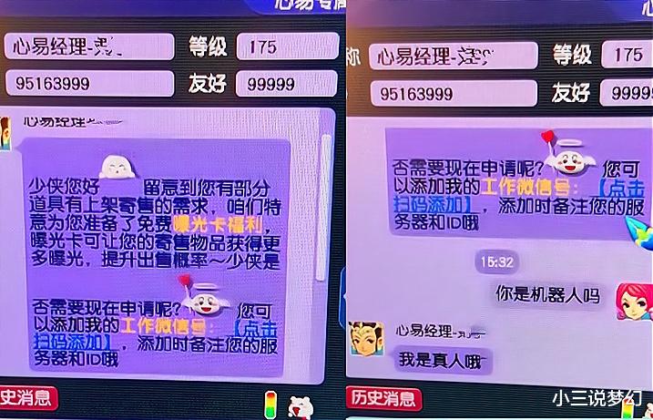 梦幻西游中的某些玩家是拥有着心易经理的联系方式的,这部分玩家是可以直接询问心易经理某些游戏设定方面的问题的,但是上面的这位玩家却感觉自己的角色被心易经理给监视了,这位玩家表示自己刚刚将东西摆到藏宝阁上,心易经理就发过来了消息,要帮助上面的这位玩家增加曝光量呢,但是小编感觉是心易经理怕上面的这位玩家跑。