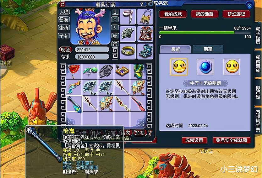 梦幻西游中的某些特技特效总是会出现在玩家打造出现意外时的装备上,上面这位玩家打造130级的装备时就没有选择使用强化石,结果打造出来了一把130级的光武,但是这把130级的光武却已经拥有着无级别限制和笑里藏刀两个蓝字效果,因为这是一把白板光武的原因,所以上面的这把武器并不是特别的值钱,也仅仅只能够按照130级无级别的价格进行出售。