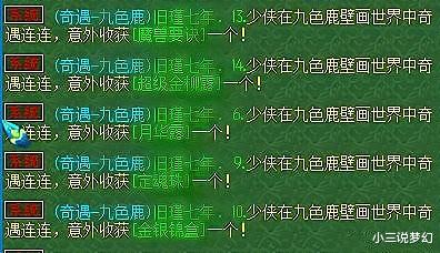 九色鹿是一个战斗难度特别低,但是获得的物品奖励却特别好的任务玩法,在九色鹿任务中有可能整个队伍都获得奖励,也有可能整个队伍全部都空车,上面的这组五开在九色鹿玩法中的5个角色全部都获得了道具奖励,这里面就包括着魔兽要诀和五宝。所以小编建议各位玩家要将每周可以进行的两次九色鹿上任务玩法全部都完成,或许你就是下一个能够获得好东西的幸运儿。