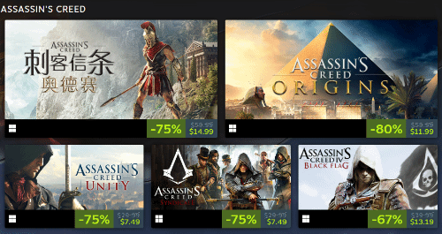 《刺客信条奥德赛》75%折扣 现价74.5元 原价298元