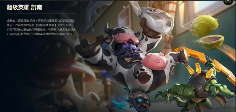 需要指出的是,下面那个扛着牛头的小个子才是凯南。该皮肤是2017年的愚人节皮肤之一,所属的类别也包含玩具系列—因此它的原画和著名动画电影《玩具总动员》的海报如出一辙。