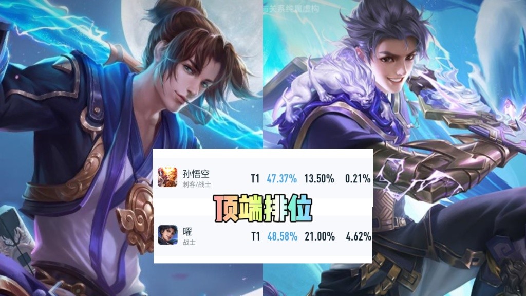就顶端排位数据而言,孙悟空胜率为47.37%,出场率13.5%;曜的胜率48.58%,出场率21%。此时,猴子的数据就都比不上曜了,强度也就低了不少,说明玩家分段越高,猴子确实越难玩,这也是为什么职业赛场上曜的登场次数要多于猴子。
