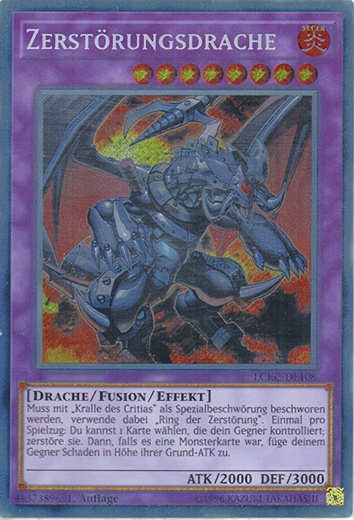 龙是一种传说中的生物,在西方的神话传说之中,一般拥有强大的力量,可以说是天生的破坏者,经常以人类为敌,而在《游戏王》设计卡片的背景之中也有人族和龙族的敌对关系,而龙在西方又视为邪恶之物,经常视为和恶魔同属一类。在圣经《启示录》中出现的红龙就是恶魔的化身,所以提及龙多半和破坏有关。而在《游戏王》的卡片之中,被冠上破坏字段的龙怪兽不在少数。今天就为大家介绍一下游戏王中的破坏龙。
