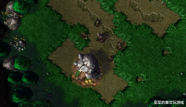 除了上面提到,出生点上方的地精实验室和下方的雇佣兵营地外,雇佣兵营地下方和出生点正对面还各有一个储量为12500的金矿点位。其中,雇佣兵营地下方的金矿点位,野怪难度低(1个4级怪加4个1级怪)、但距离基地较远,开矿轻松防守相对困难一些;正对面的金矿点位,野怪难度高了不少,有3个5级野怪和2个2级野怪,开矿难度大,往往需要积蓄一些战斗力才能拿下,但距离基地更近,防守起来轻松很多。